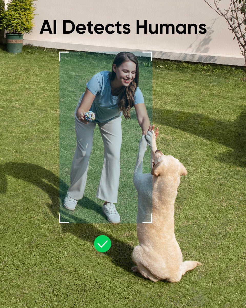 Personendetectie: AI waarschuwt u voor iemand in uw tuin, of het nu familie, een koerier of een vreemde is. Maak verbinding met HomeBase 3 voor individuele gezichtsherkenning.